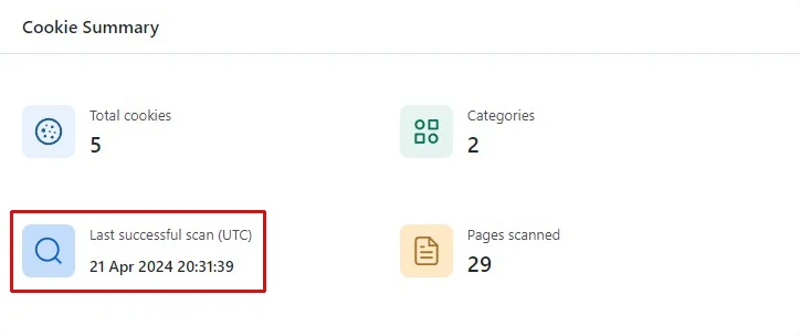 Po rozwinięciu możemy sprawdzić, kiedy ostatnio nasza strona była skanowana pod kątem wykorzystywanych ciasteczek.