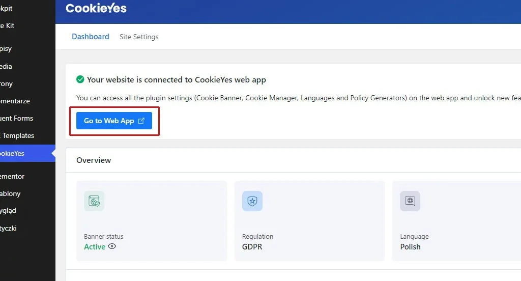 W celu dokonania ponownego skanowania strony, należy zalogować się na stronę CookieYes.